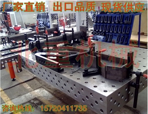 所有模塊加工精度均較高,工作平臺(tái)上任意兩個(gè)孔的公差在±0.1mm以?xún)?nèi),完全可以滿(mǎn)足焊接加工的需要。在裝配或焊接過(guò)程中,使用定位塊、連接塊、夾緊器和支撐塊,能夠?qū)ぜ_定位,需要焊接的工件可以被穩(wěn)定地固定在各個(gè)定位點(diǎn)或定位面上。如果工件本身的幾何尺寸不準(zhǔn)確,也可以很快被檢測(cè)出來(lái),在初加工工序中便被消除。